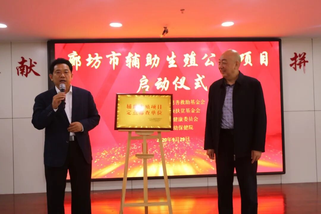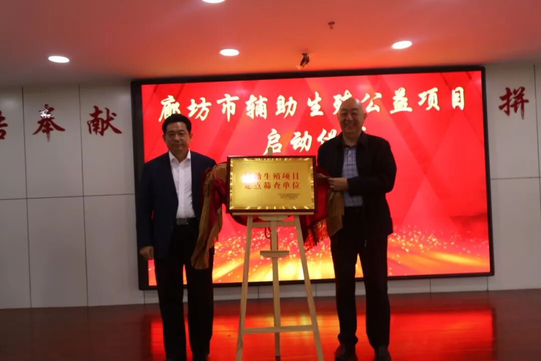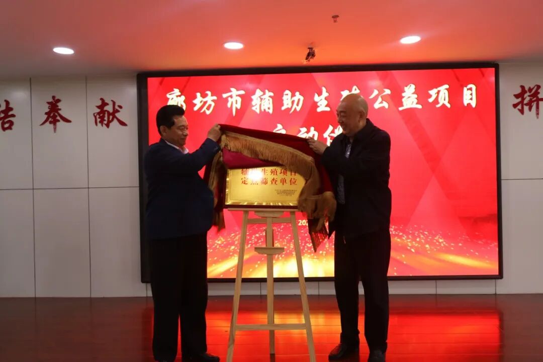 揭牌仪式由廊坊市卫健委党组书记、主任杨庆华和北京联慈健康扶贫基金会常务副理事长刘小平共同为廊坊市妇幼保健院作为辅助生殖项目定点筛查单位揭牌。