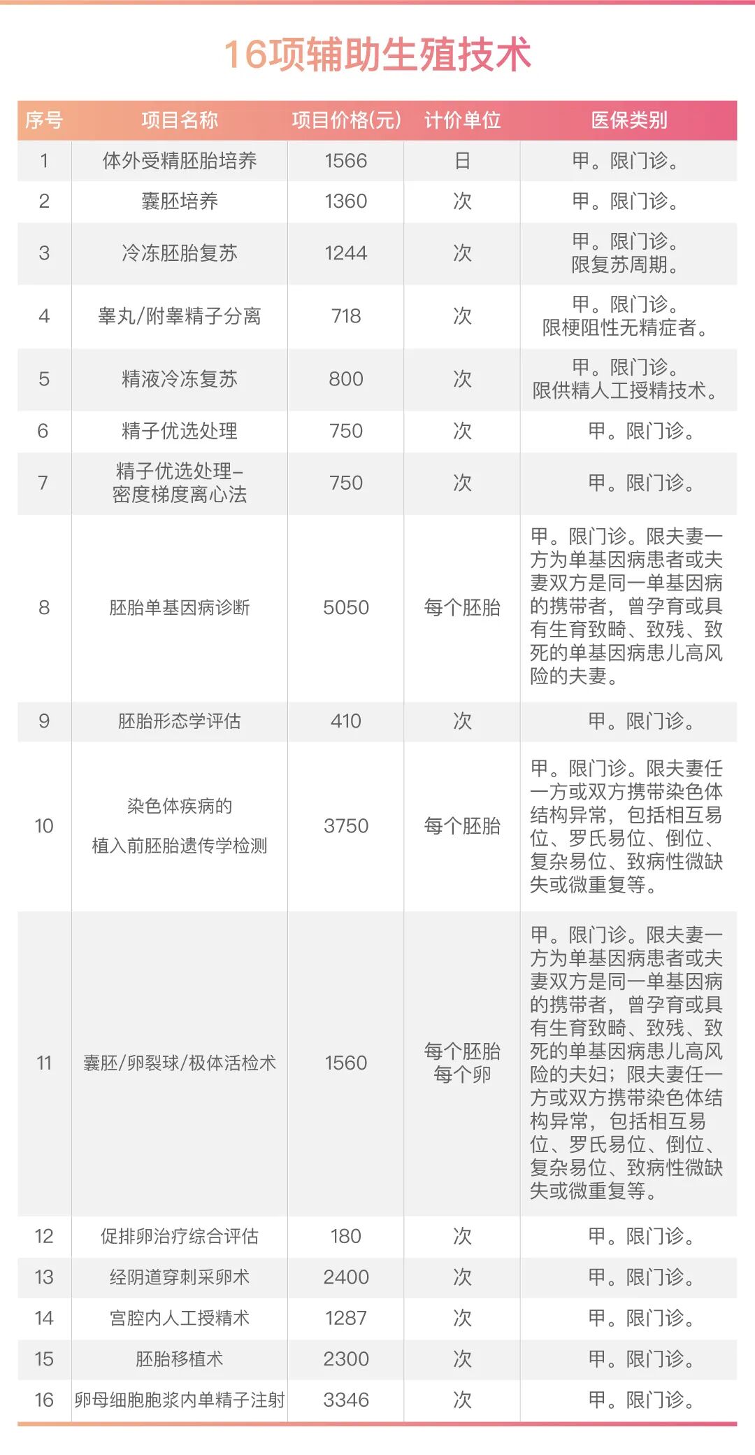 涉及人群广、诊疗必需、技术成熟、安全可靠的辅助生殖技术项目纳入医保甲类报销范围。