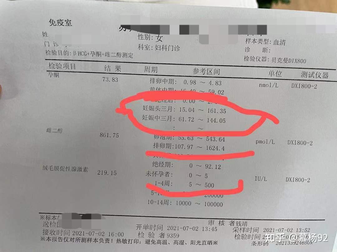 给各位姐妹报告喜讯,我是6月18号做的第二次人授,现在已经怀孕了。下图是我老公拿完报告后激动地圈出来的怀孕信息。