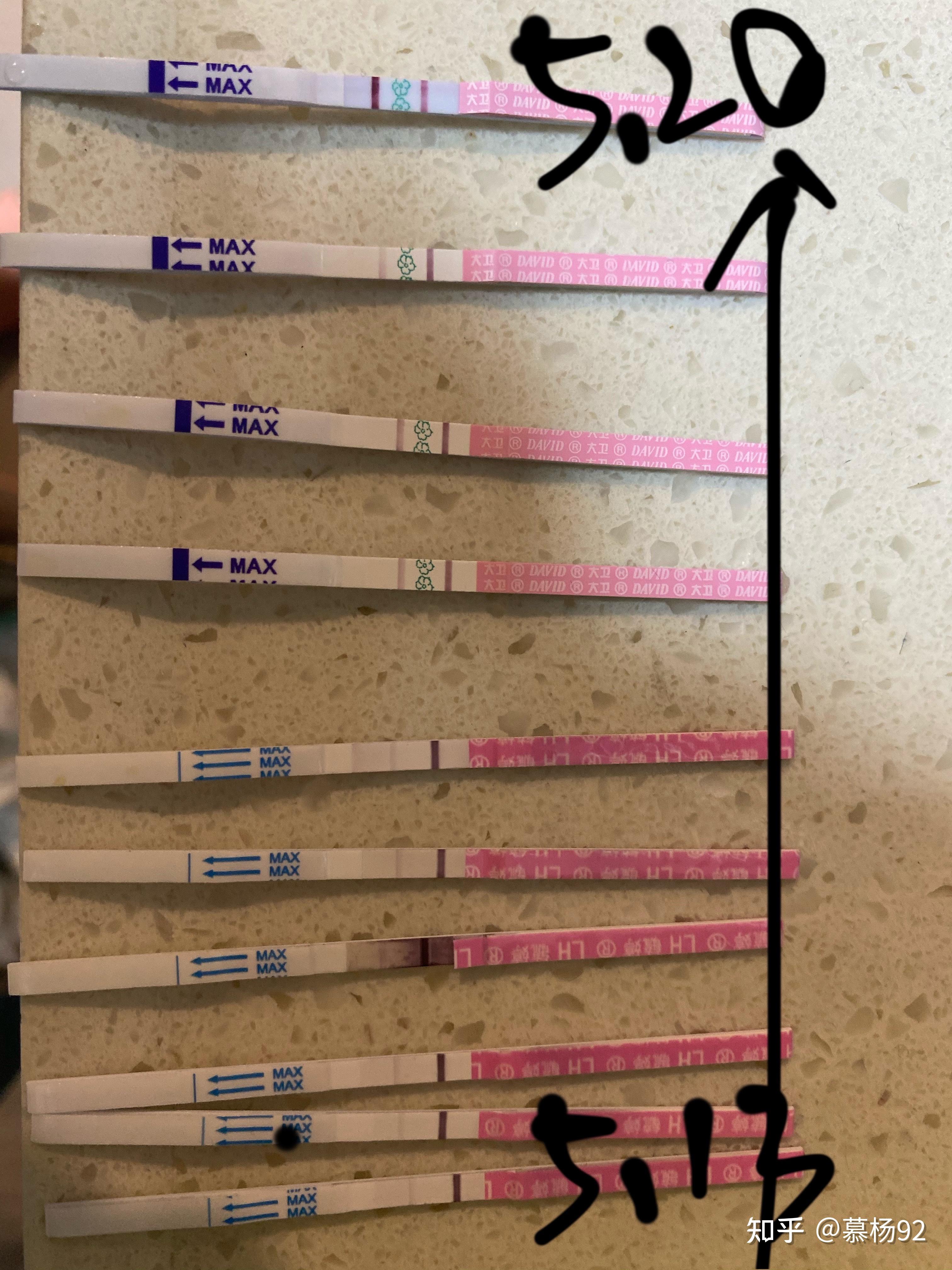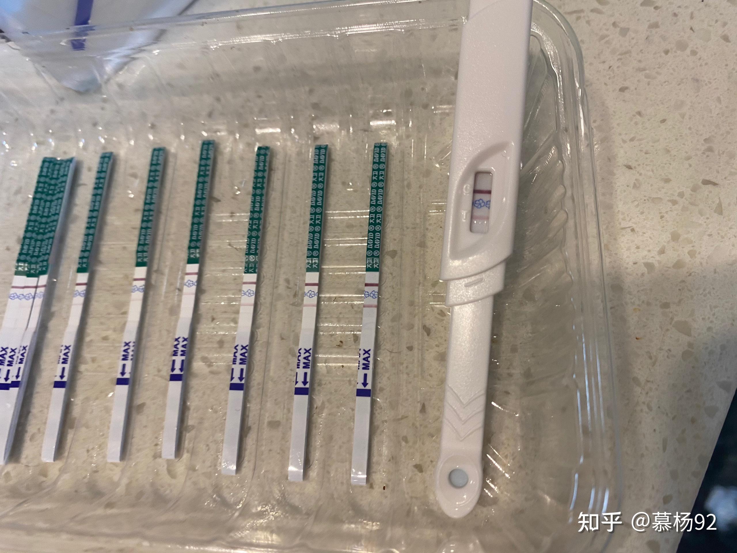 在拿到报告前,从人授后第九天开始,我就用试纸测过了,第一次测要很用心才能看到灰印,然后慢慢加深。前两天肚子有点痛,还发现有褐色分泌物,所以去医院抽血了,结果是怀孕,血值很正常,下周去复查,看看血值翻倍情况。