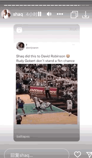 北京时间9月29日,虽然名宿奥尼尔已经退役了,但是依旧活跃在NBA的篮球圈,并且是知名的篮球评论员,人气极高,近日,奥尼尔在社交媒体上转发了一段自己打爆大卫-罗宾逊的视频,不过不是针对大卫罗宾逊,而是戈贝尔。
