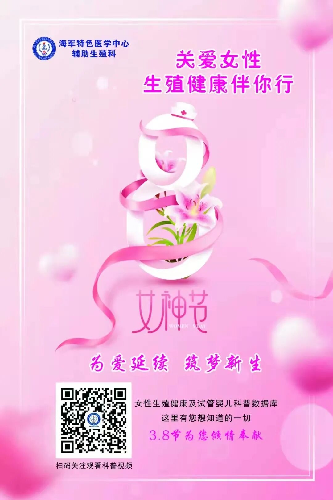 风和日朗,陌上花开,春意浓浓的三月,是属于女人的季节。在“三八节”到来之际,海军特色医学中心辅助生殖科为广大女性朋友开放《生殖科普视频》频道(点击阅读原文,收看科普视频)。