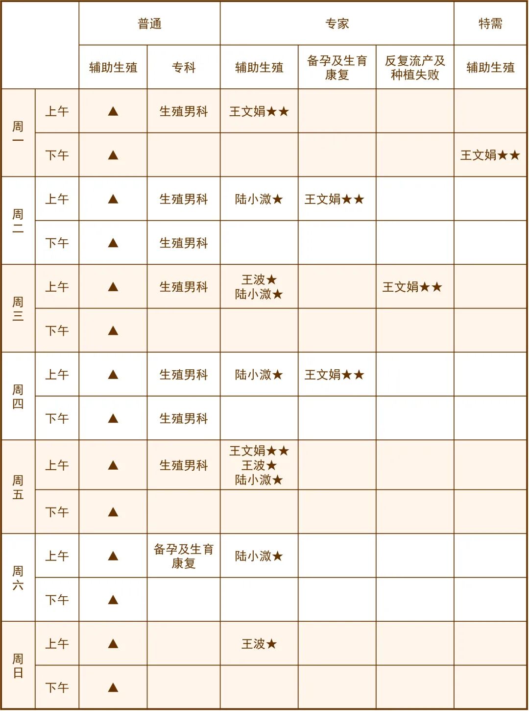 ★★主任医师 ★副主任医师 ▲普通门诊
