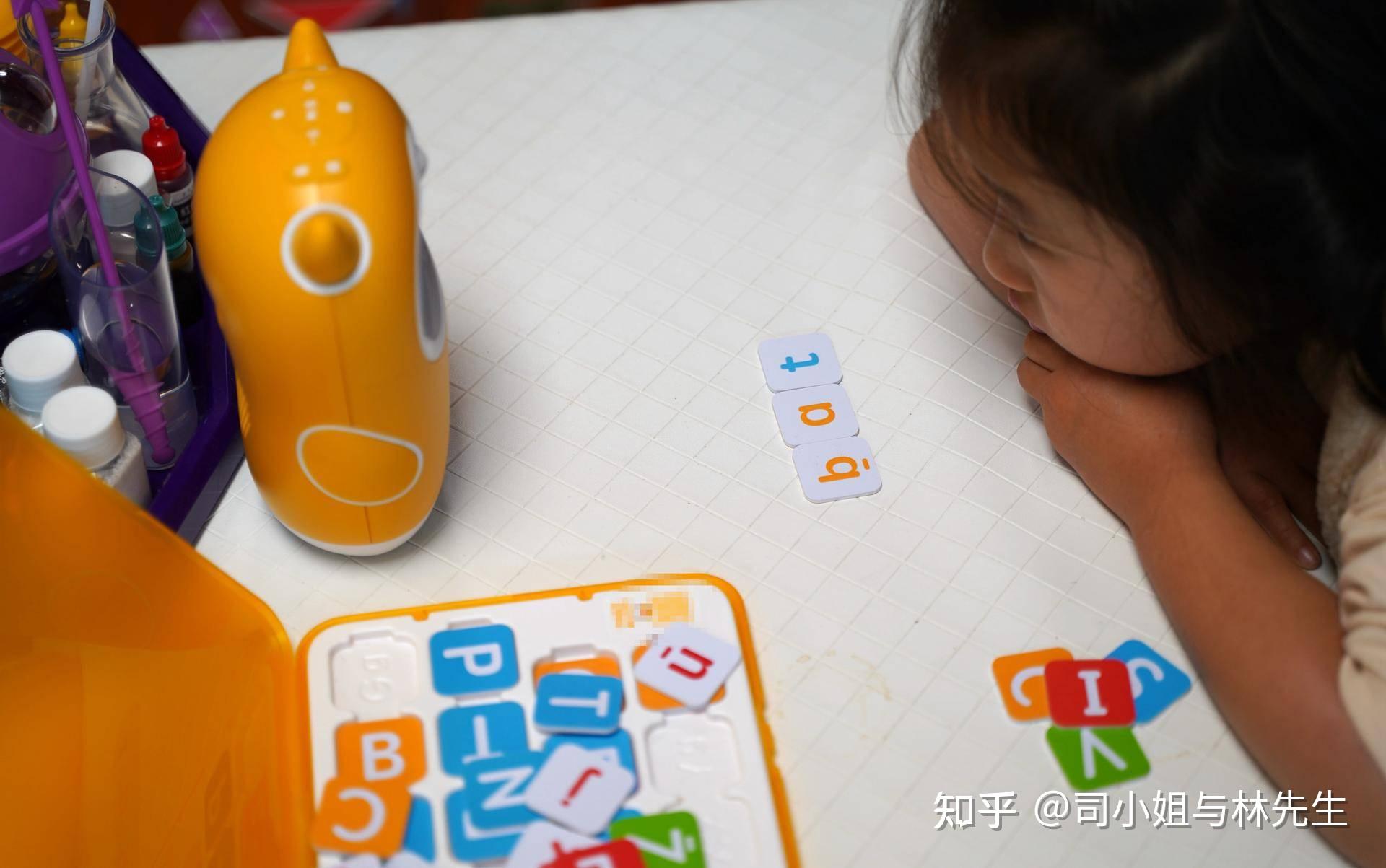 自己在一个人学习拼单词,现在拼单词对于她来说还是比较难了一些,不过对于认识字来说兴趣要大一些。