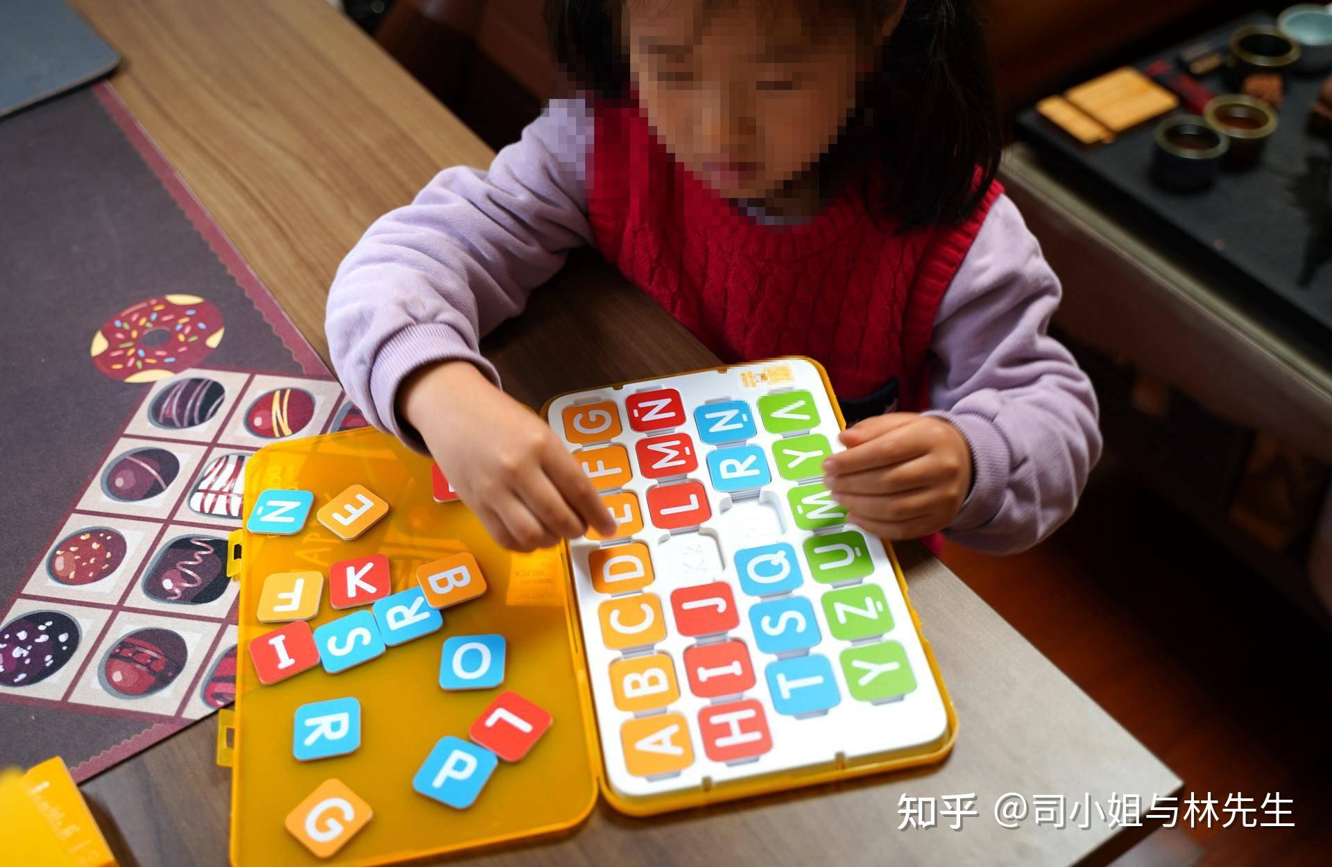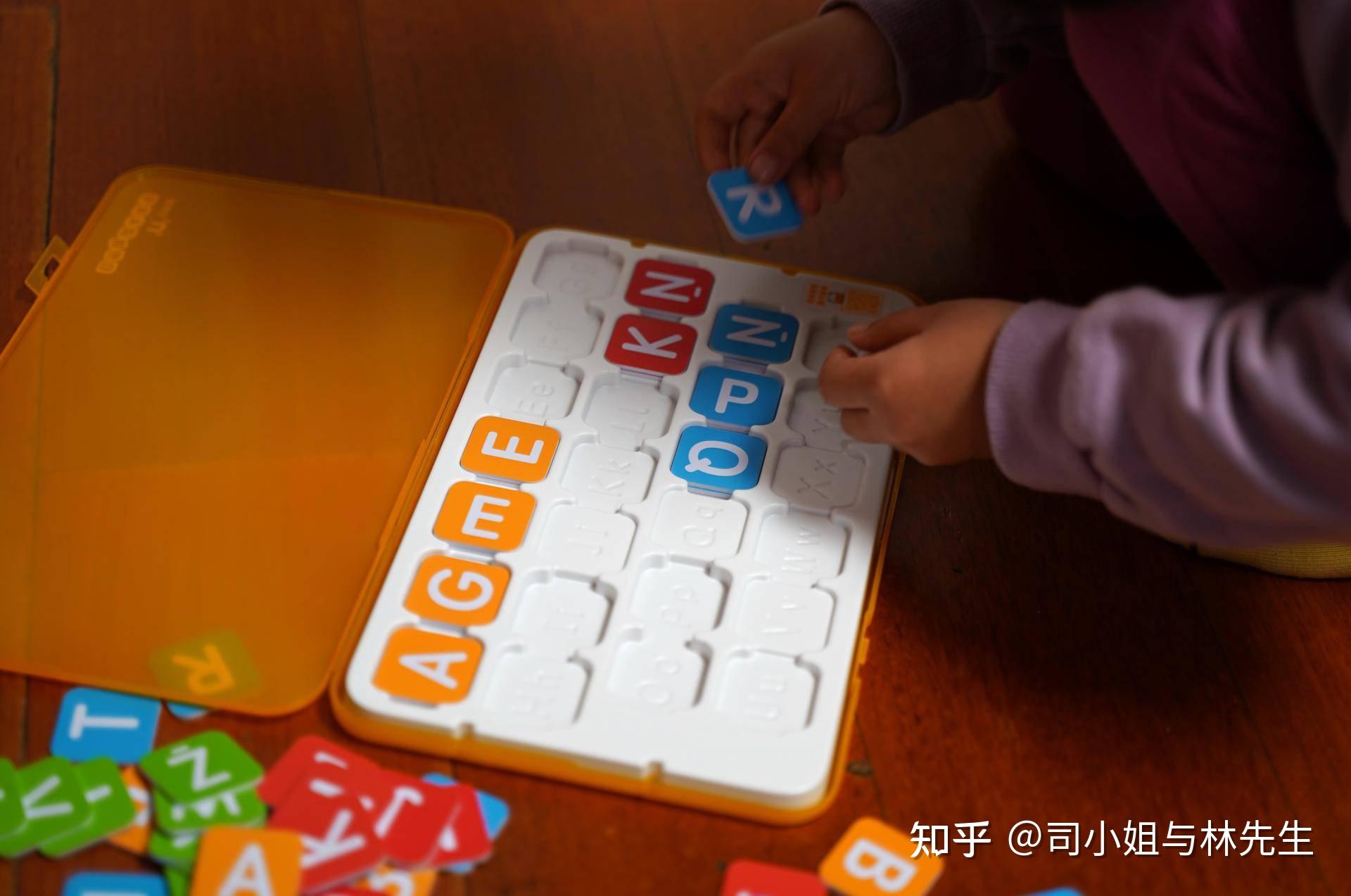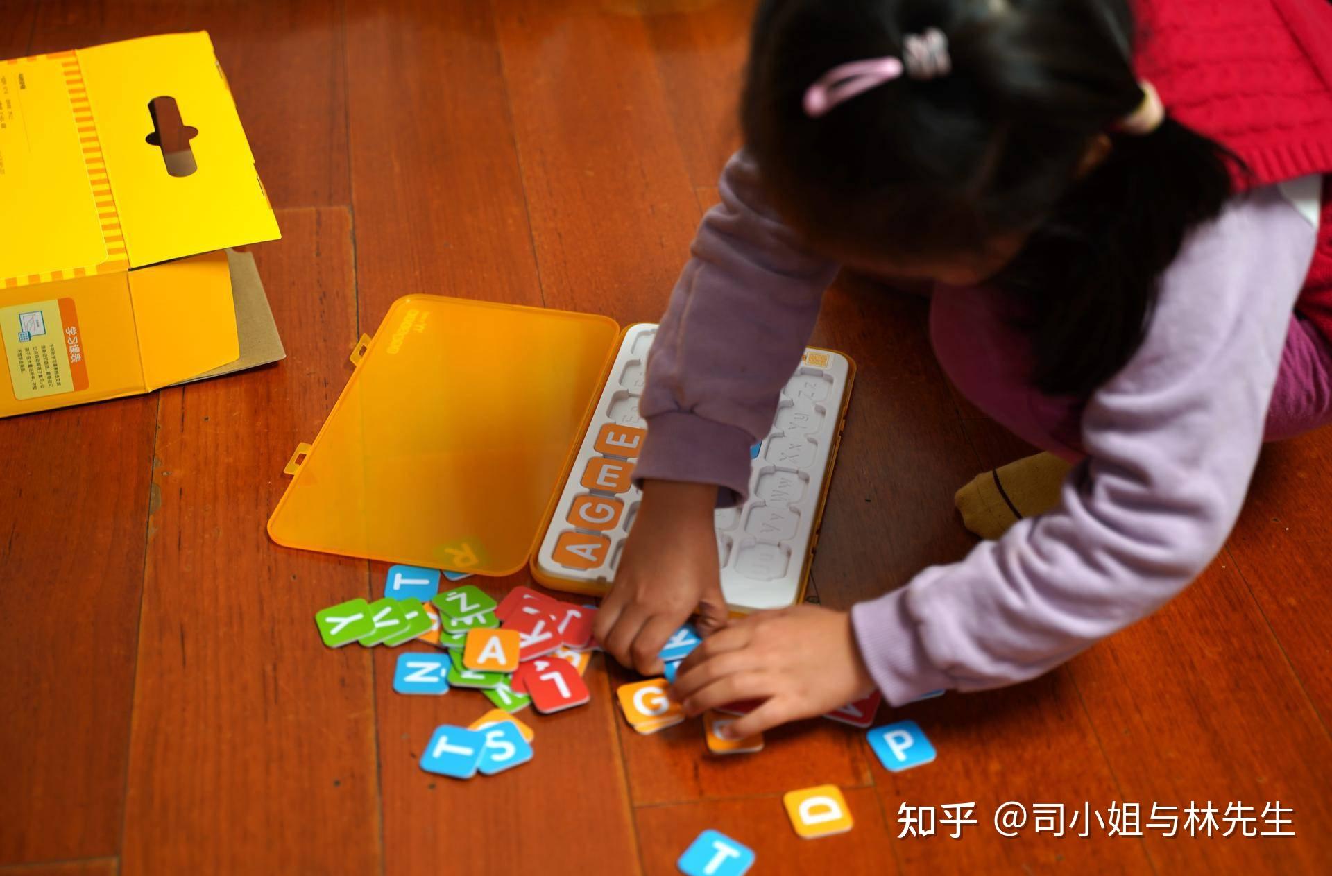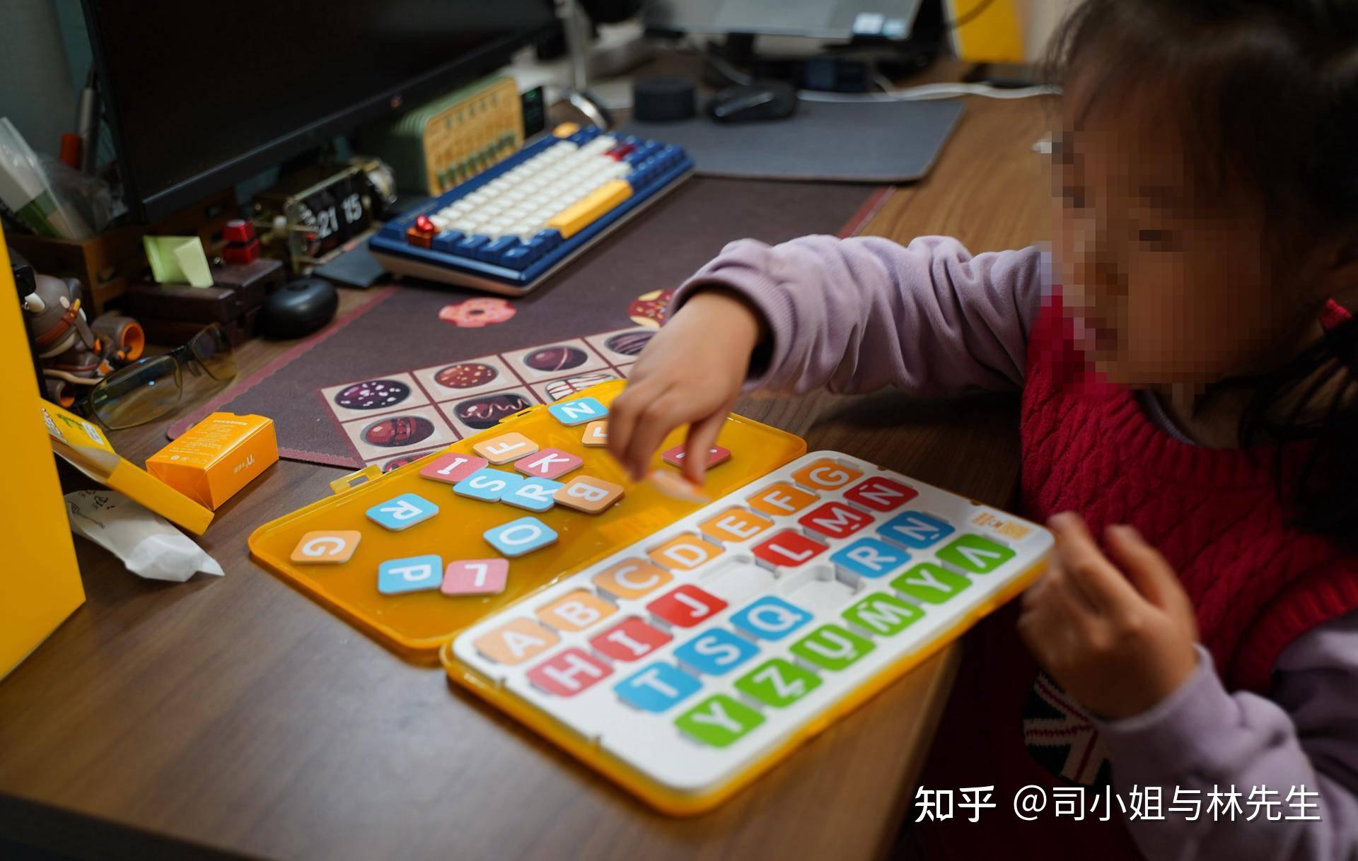 我让小家伙一个一个放进去,脾气急的跳起来,我耐心的和她说让她慢点来,为了后面对应单词和读音,不然字母乱了,学习的时候不好寻找。