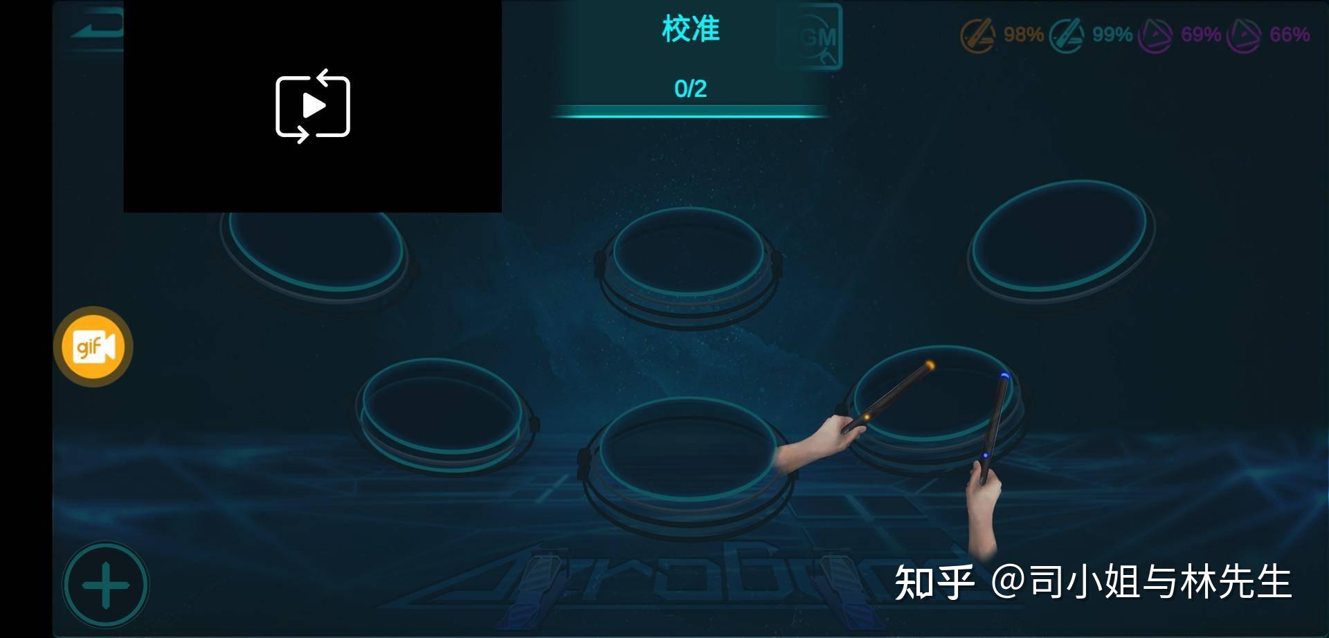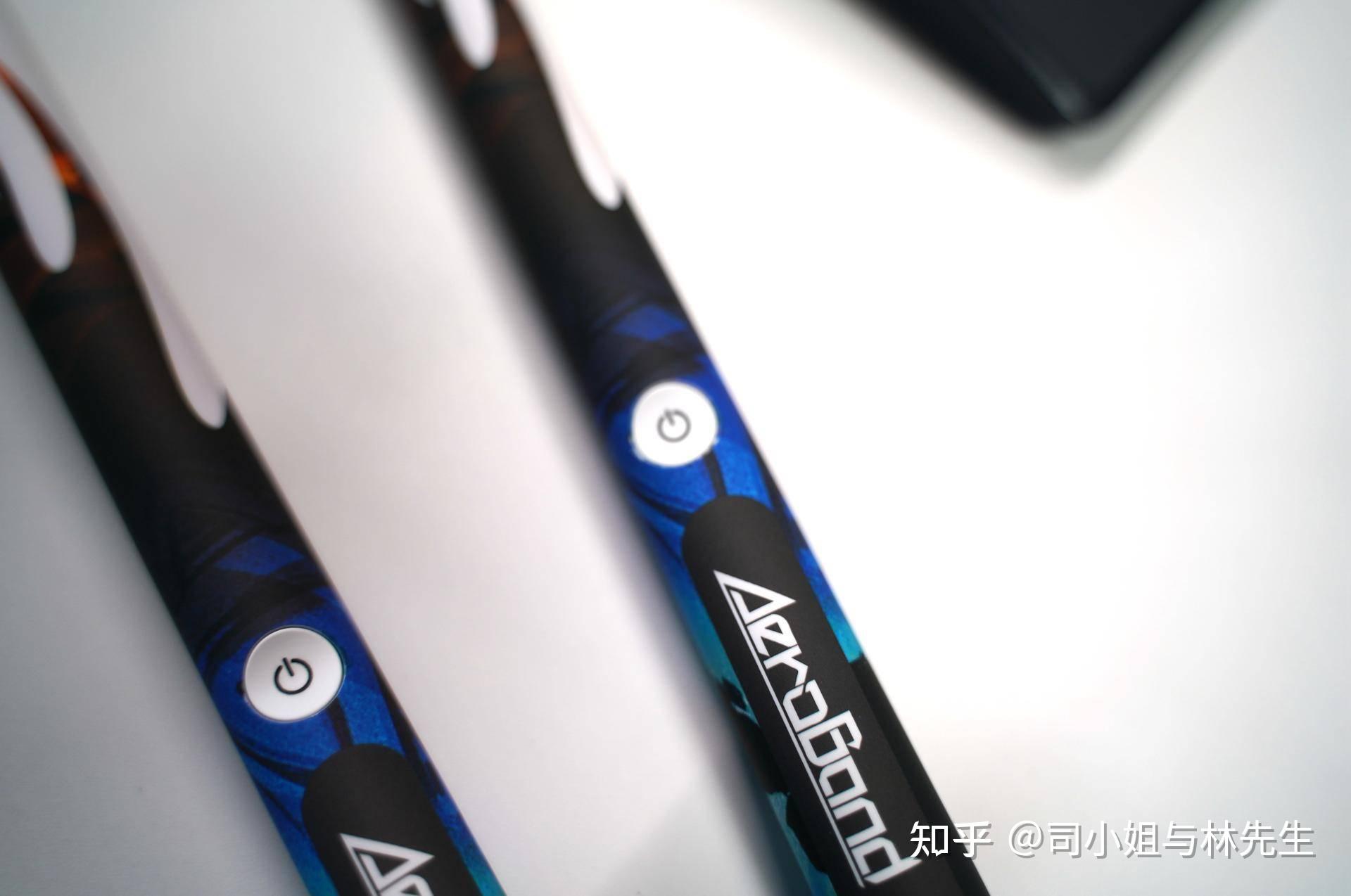 鼓槌本身也是通过蓝牙和手机连接,所以自身仅仅有两个按钮,用来调整姿势和校准位置。同时在敲击的时候通过鼓点的敲击是否正确,鼓槌本身还有震动反馈。