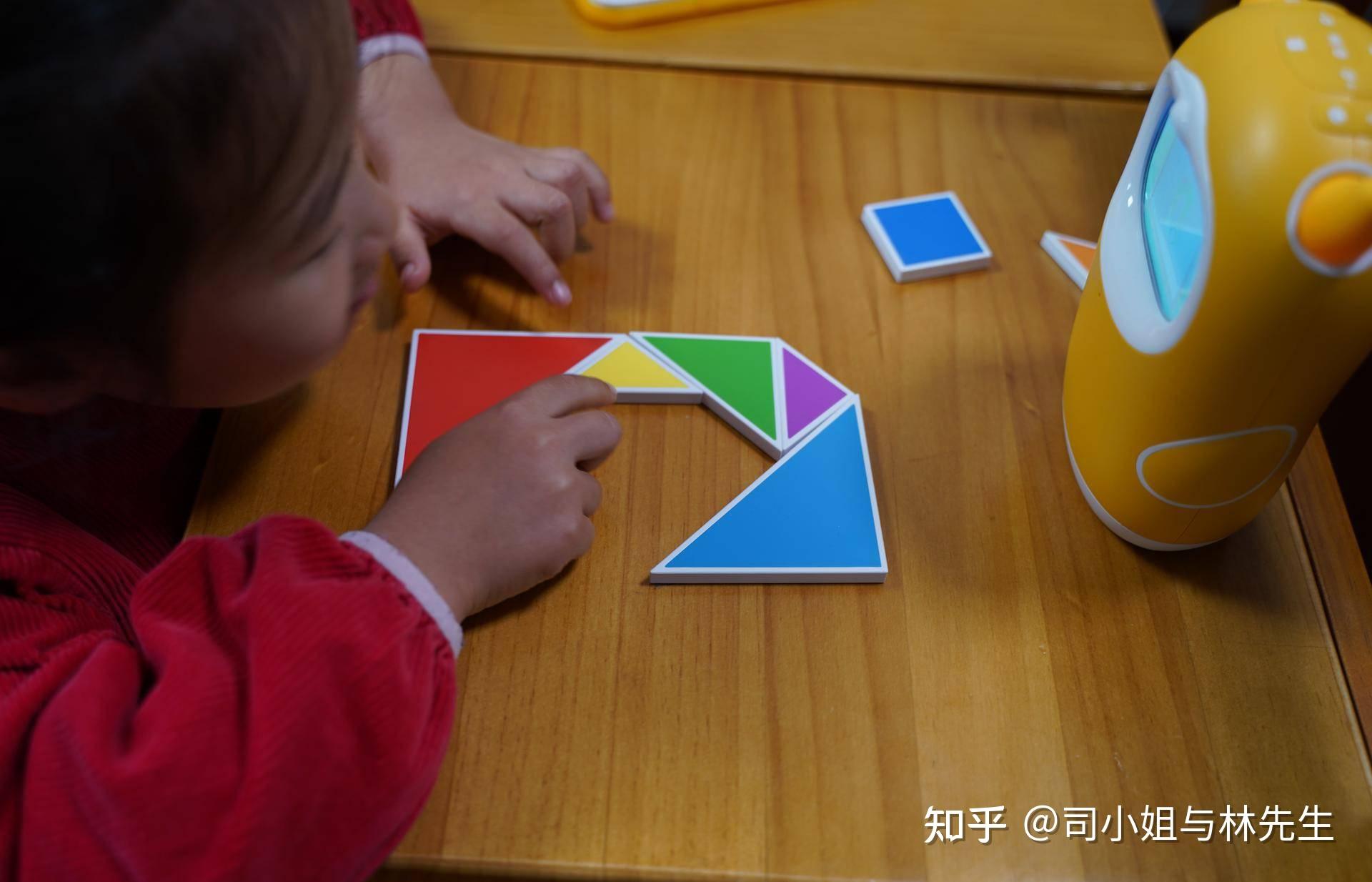 通过七巧板的拼图认真的学习从0-9的拼图方法。这也是能激发小朋友学习兴趣的方法。