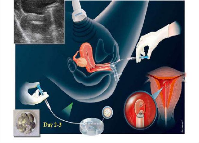 胚胎学家会将胚胎的评估结果汇报给医生,并选择最合适的胚胎进行移植。在B超引导下,用一根很细的胚胎移植管将胚胎移植入子宫。