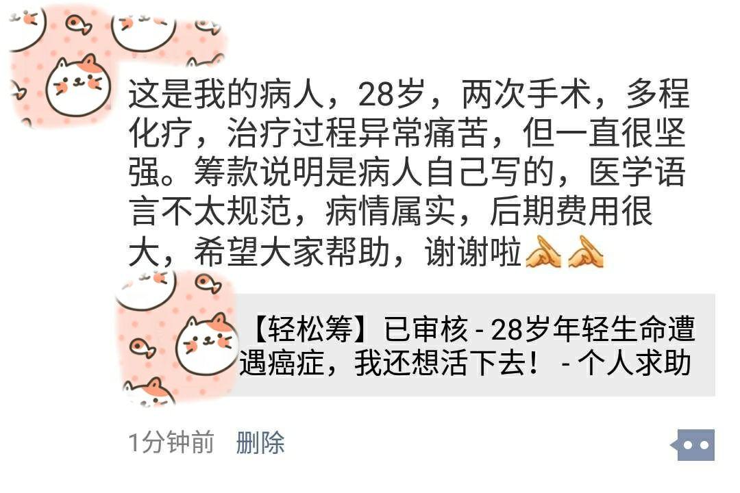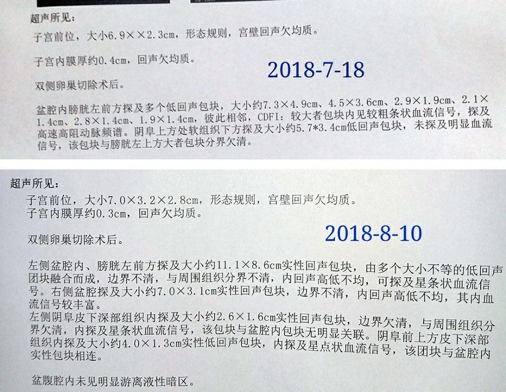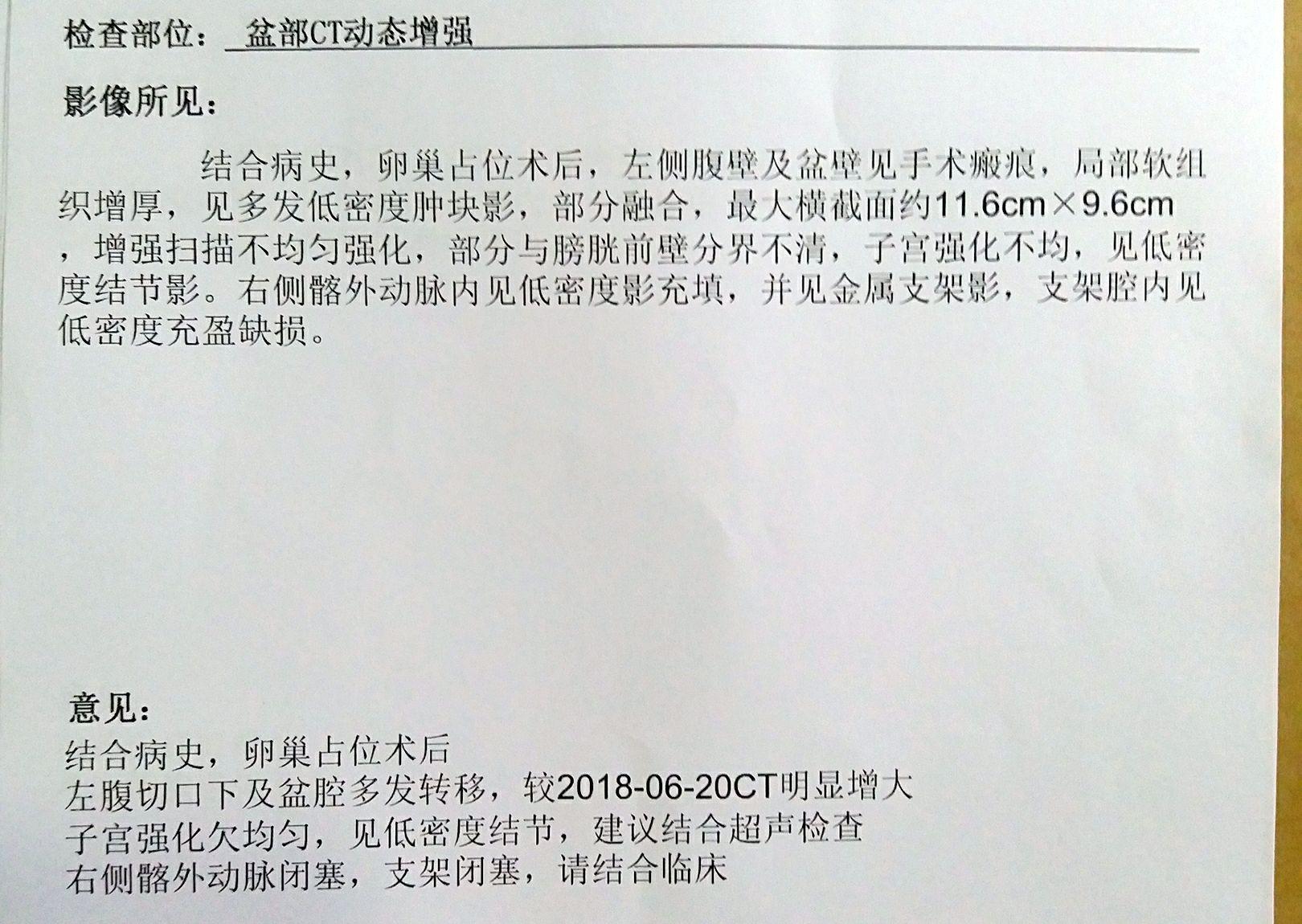 这个问题我觉得很有必要说一下。我2013年检查出卵巢囊肿,现在2017年,卵巢癌等死中……以下全部真实,只是希望得卵巢囊肿的人有事没事多检查。 2013年我刚大学毕业工作,10月份单位组织查体,检查出了左侧卵巢囊肿,大概是3.8×4.5大小,医生说没事,手术不必要,吃药也没太大效果,每年做B超没超过5㎝就没事,大部分人一生大小不变甚至有的人囊肿自己消失。我有些担心在网上查了半天也基本是这种论调,就没怎么在意。2014年10月再查大概是3.5×5.0,到了临界值,问医生要不要紧,医生说就像气球压扁了,大小跟去年没什么变化,观察就行。再2015年四五月份吧,又查,仍然没有变化,查肿瘤标志物也没有任何异常,我基本就没怎么觉得这个囊肿有什么问题,现在想想,真是后悔的无以复加! 同年,我辞职了,去了离家近的城市工作。新工作只有单休,压力也大,我能力一般,时不时会被批评,这时候的我,根本就把囊肿抛到脑后了,再也没有去查B超。当然,我现在的单位不组织员工体检。直到2017年的6月,肚子只用了一两天的时间变大了,而且左腹压上去是韧的手感,就像肚子里有个皮球,而不是软的,我突然想到了,曾经左侧有个卵巢囊肿来着……23日上午去医院,下午就进了手术室,做了5个多小时的手术才结束。曾经的囊肿现在的肿瘤16×20㎝大!! 肿瘤大不是问题,关键是活检是恶性的,而且是“高度恶性”,最关键的是,肿瘤已经破了……分型是卵巢幼年型颗粒细胞瘤,恶性的,得这个概率大概是几十万到几百万分之一吧。这个概率代表什么呢?就是走在路上被雷劈了或者买彩票中500万大奖的概率了。我一个再普通不过的普通人,普通的家庭,普通的智商,普通的工作,以为也会普通的过完一生的……万万没想到会有这么一天的。连续三年明明都检查没事的,为什么偏偏两年没查就是恶性肿瘤了?为什么有人抽烟喝酒都没事?为什么……是我? 这之后就是化疗了,手术和化疗的痛苦现在简直不想再回忆,然而在手术半年后,同时也是化疗结束一个半月后的现在,2017年12月底,检查显示,肿瘤复发转移了……(因为病情非常罕见的关系,到底什么放化疗方案更有效是不确定的,只能当小白鼠实验着)现在我肚子里到处都是肿瘤,情况好的话还能手术换化疗方案或者放疗;情况不好就省掉手术直接放化疗了,也就是“想吃点什么就吃点什么吧”的阶段了。现在还需要专家们开会讨论,不知道以后会怎样呢…… 我不抽烟不喝酒,没有做过亏心事,不吃隔夜饭,很少吃吃垃圾食品,唯独喜欢晚睡,大概十一点半睡觉吧,说起来没什么严重不良嗜好,真的、真的、真的从来没想到会有这么一天,让我的父母辛苦供我上到大学,没等我开始回报一二又要供我住院,过个一两年又要白发人送黑发人……这一度让我无法接受,却又无可奈何。 所有看到的人,不管怎样,真的要定期检查!你永远不知道会有什么事发生在你身上。 2018-6-23更 不知不觉,距离诊断出得了卵巢癌整整一年了。我还活着,也仅仅是活着。 这一年,我一直在化疗,方案前前后后换了三个,昨天刚刚出院,也拆掉了打化疗药用的picc管。却不是因为病情稳定可以回家了,而是因为三个化疗方案对我都没有用,一边化疗肿瘤却依然顽强地生长,国内外的资料都没有可用的化疗方案了,只能是凭医生的经验,开药回家吃试试。只能是试试,没有先例可循,医生应该也非常愁吧,对于我这什么药都不起作用的肿瘤。 这一年,我做了两次手术,挨了数不清的几百针,吃了数不清的几千粒药,不停地化疗。头发没了,眉毛没了,贫血,肝功数值基本就没正常过,一直恶心甚至有时候呕吐,打针太多以至于有六七个硬结消散不了还一碰就很痛。右侧髂外动脉弄了个人工血管还放了个支架,需要终生服用抗凝药,结果还是部分堵塞,只要上坡上楼梯右腿就酸的要命。我是还活着,也仅仅是活着而已。 我无数次告诉自己不能放弃,要乐观,然而我怎么乐观的起来,连医生都没办法了,只能凭经验。不管是化疗还是手术,都太痛苦了。每次化疗时我都劝自己,挺过去就好了,然而一次次的结果都是复发、复发、复发。医生说我已经是四线了,查遍所有资料,都没有我这个病的四线治疗方法,而且因为我有人工血管支架,也不能服用靶向药。只能吃药试试了。我好累了,好想放弃了,真的不知道该怎么办了。 2018-7-16更 和家人一起看电影了,有些场景真的很感同身受,眼泪直接憋不住,中国电影还是有救的。 第四种化疗方案又失效了,能明显摸到肿瘤又变大了,还有些痛,过两天要再次入院,医生应该超级无奈吧。 不知会怎样呢,有些害怕。 ~~~~~~~~~~~ 2018-7-21更 我现在更得挺频繁的,因为我越来越意识到,我随时可能突然就停更了。 我不知看着这个结果该说什么,七个包块,而且又大了。 所以我又换方案了,这是第5个方案,医生建议我吃靶向药。 有很多回复建议我吃靶向药的,我有给回复了:医生说不行。靶向药是有出血或血栓的可能性的,比如牙龈出血、咯血、鼻出血、尿血便血、内脏出血、脑出血等。本身已经有风险了,我还吃着抗凝药,这无疑加大了风险,相当于冒着更大的生命风险吃药,所以之前医生都是排除这个方案的。然而现在实在是没办法了,不吃就相当于放弃治疗了。 这是一个疗程21天的药,12400,全自费。一共14粒药,基本一粒药885。我吃的不是药,是钱。 其实还有内分泌治疗法,但从免疫组化的检查结果来