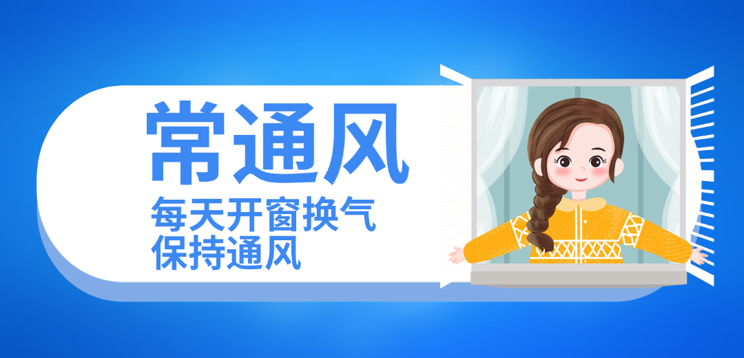 每日开窗通风2~3次,每次20~30分钟。温度适宜时,可使窗户常开。