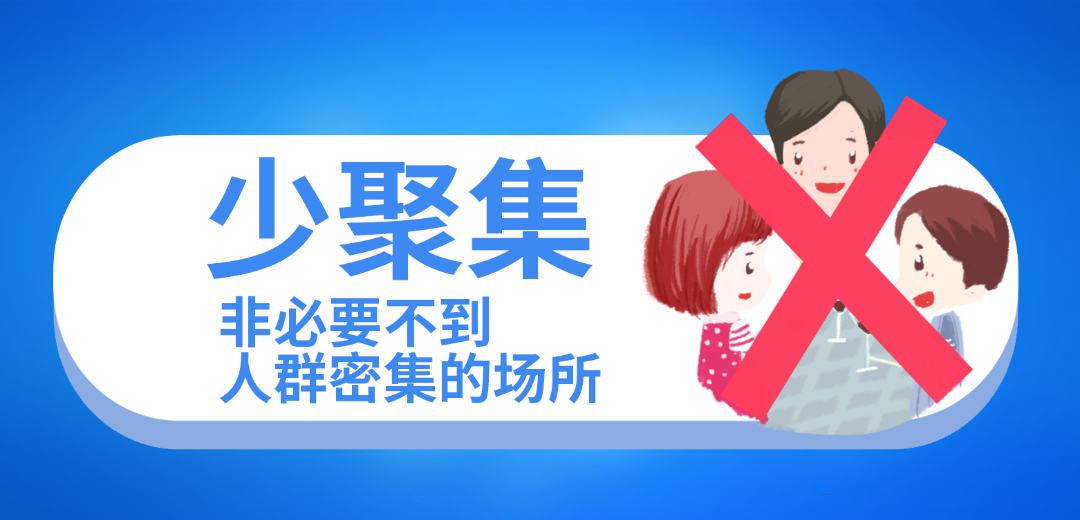 在公共场所要遵守1米线原则。少聚餐聚会、走亲访友,非必要不到人群密集的场所。