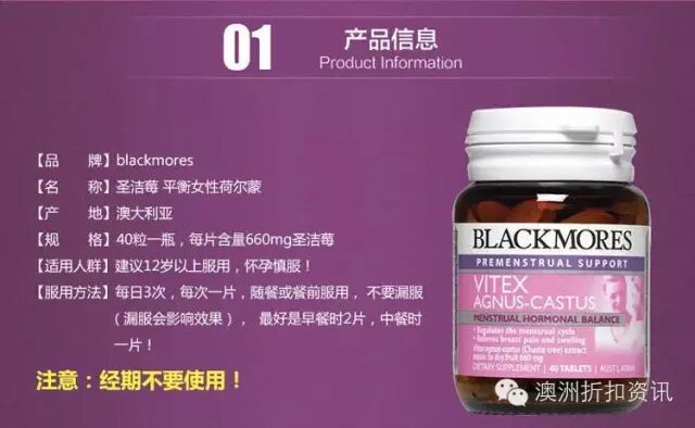 Blackmores天然圣洁莓(Vitex Agnus-Castus)平衡内分泌,缓解经前乳房胀痛,促进乳房健康。调节痛经,月经不规律, 经期不适,经期长痘痘等经期综合症,不孕及多囊卵巢患者。服用方法:每日3次,每次一片,随餐或餐前服用,不要漏服(漏服会影响效果)。应该注意的是,一般来说连续服用2-3个月,依个人体质,情况好转后可以转为一天2次。因为圣洁莓对女性激素系统的平衡调节是长期的,保健品的见效都不会很快,不太可能在服用后立即缓解PMS相关的不适症状,对于发作比较频繁或者是比较症状比较严重的经期前综合症建议服用3-4个月。对于无月经的不孕妇女,建议持续服用圣洁莓12-18个月,如果使用期间怀孕,可停用。