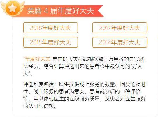 在临床医疗工作中,王凌主任擅长对不孕症、习惯性流产、精准保胎、妇科内分泌疾病、更年期综合征等,采取中西医结合治疗,疗效颇佳。除了日常门诊外,她还通过网络平台去帮助全国各地的更多患者。精湛的医术+亲和的态度+超强的责任心,王凌主任在好大夫平台上已连续4年被评为“年度好大夫”!