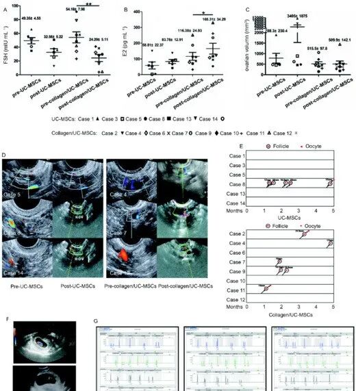 国内文献:南京大学医学院附属鼓楼医院在脐带间充质干细胞复合胶原卵巢移植的方式治疗卵巢早衰所致的不孕症的研究结果表明:胶原/脐带间充质干细胞移植能够改善患者的卵泡活化和卵泡生长,并有助于卵巢功能的长期恢复,包括卵巢血流和雌二醇水平。而且,有2例患者在移植后成功受孕。