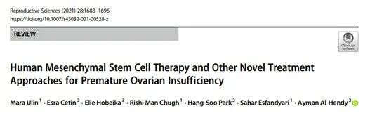 国外文献:2021年5月,发表在《Reproductive sciences》上的一篇综述认为,间充质干细胞(MSCs)移植是治疗卵巢早衰(POF)中最有效的方法。