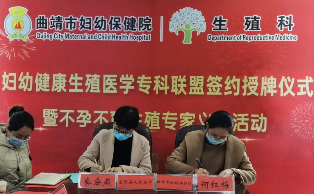 双方致辞完毕后,在李俊贤副院长的主持下,我院生殖科何红梅主任和富源县人民医院妇科秦桑燕主任进行了“妇幼健康生殖医学专科联盟”签约和授牌仪式。