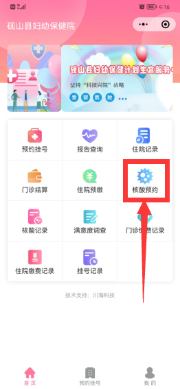 1. 返回首页,点击核酸预约窗口