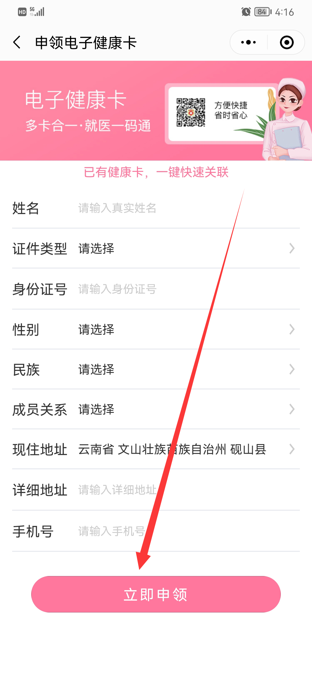 3. 正确填写信息,填写完成点击立即申领