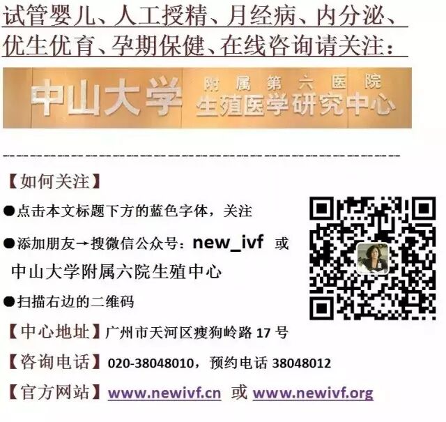 关注微信公众号“中山大学附属六院生殖中心”了解关于生育备孕的正确资讯,有感兴趣或有疑问的地方,可直接后台留言。