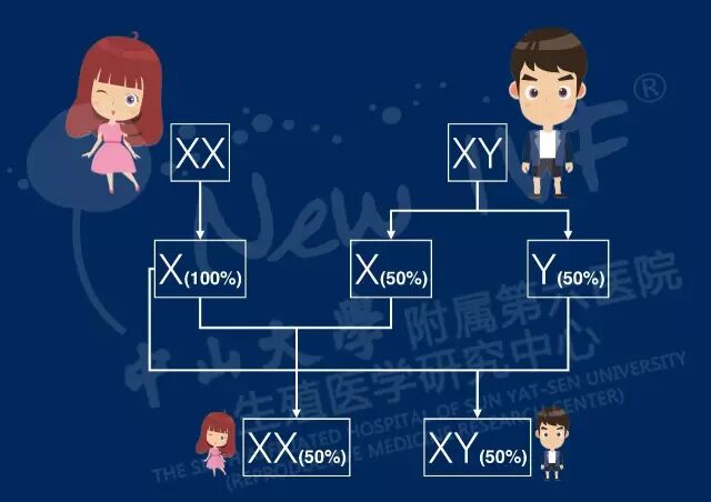 看到了吧,生男生女的机会各一半!起决定因素的是男方精子携带的性染色体种类!
