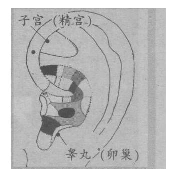 耳朵上存在着两个穴位,一个是子宫点,一个是卵巢点,通过按摩刺激子宫点可以调整子宫的状态,通过按摩卵巢点可以改善卵巢的功能,促进有规律地排卵。相对应的,男性耳朵上就是精宫点和睾丸点,长期按摩刺激可促进睾丸分泌精子,并有助于改善精子质量1